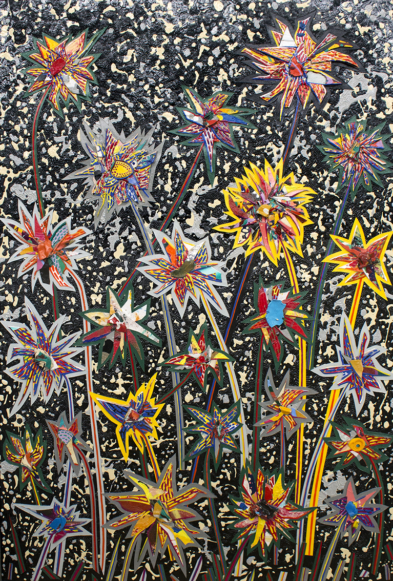 Atajo De Noche, 2016, acrylic, enamel, paper and collage on canvas, 73 x 50 cm.