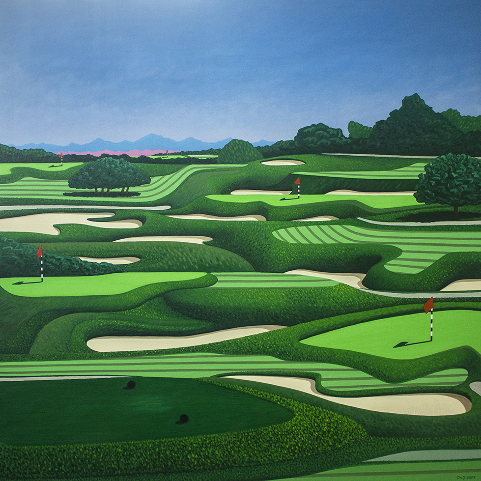 Golf 64 (5holes), 2023, Oil on canvas, 100 x 100 cm.